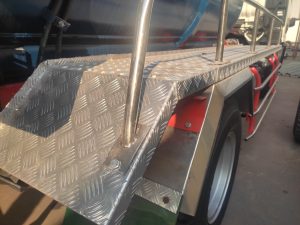 - Sàn thao thác làm bằng vật liệu nhôm nhám với kích thước 520×360 thuận tiện cho việc để ống, vệ sinh bồn và vận hành xe.