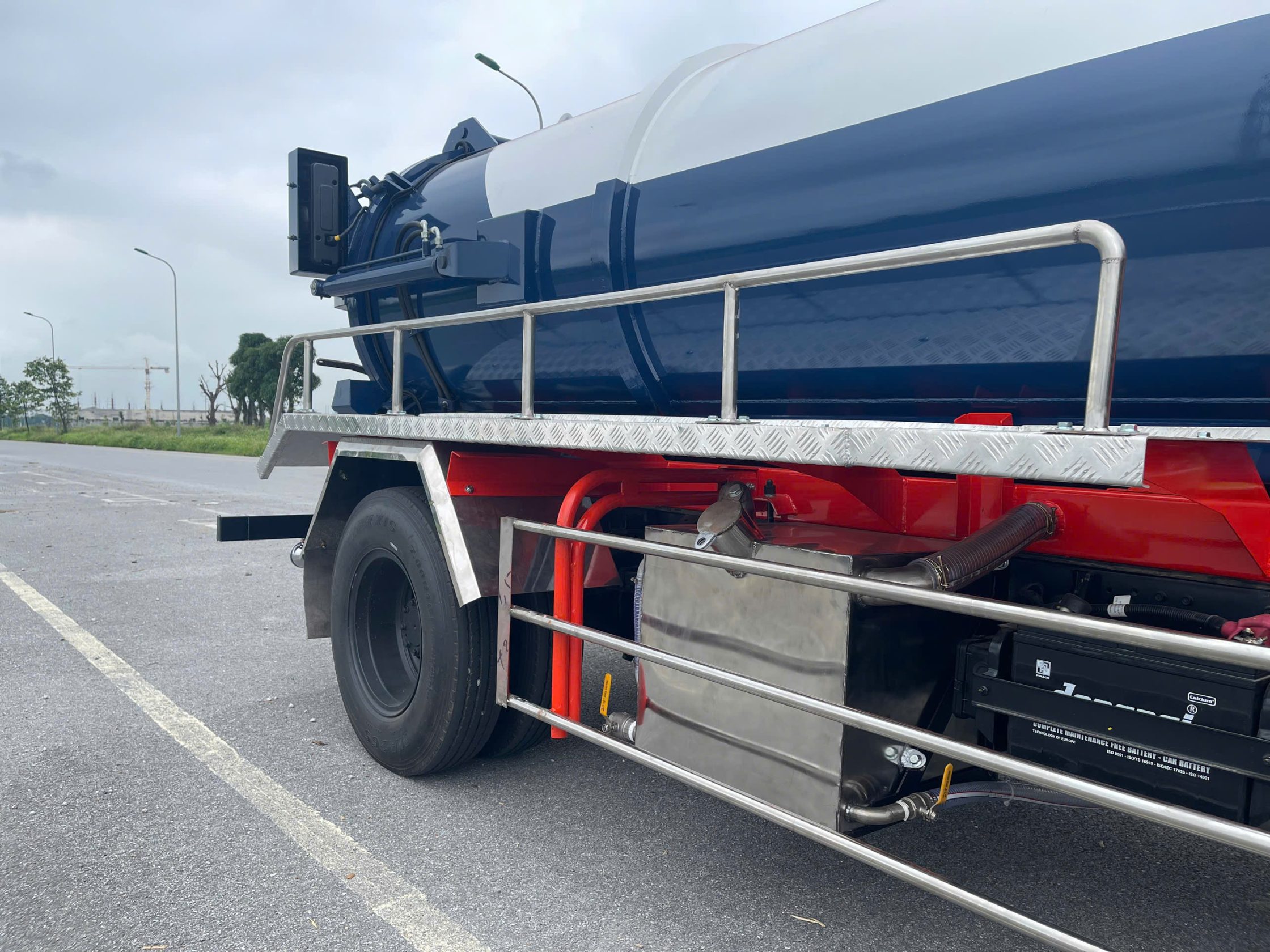 ∇ Nắm bắt được tình huống rò rỉ chất thải khi tham gia giao thông, chúng tôi đã cải tiến nắp bích phía sau bồn với công nghệ tiện rãnh cho độ chính xác cực kì cao, đảm bảo độ kín, khít và tránh rơi gioăng khi mở nắp đồng thời góp phần tăng hiệu suất của bơm.