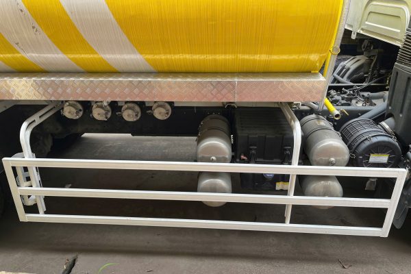 - Cản hông, chắn bùn được làm bằng Thép SS400, hộp đựng ống và sàn thao tác được làm bằng nhôm nhám dày 3mm được chấn tạo hình chi tiết giúp xe bền đẹp.